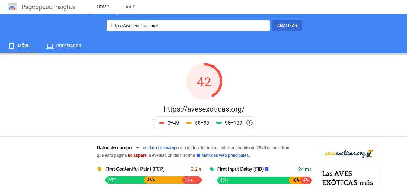 Se me ocurre hacer una prueba sobre la web de uno de sus clientes con PageSpeed Insights